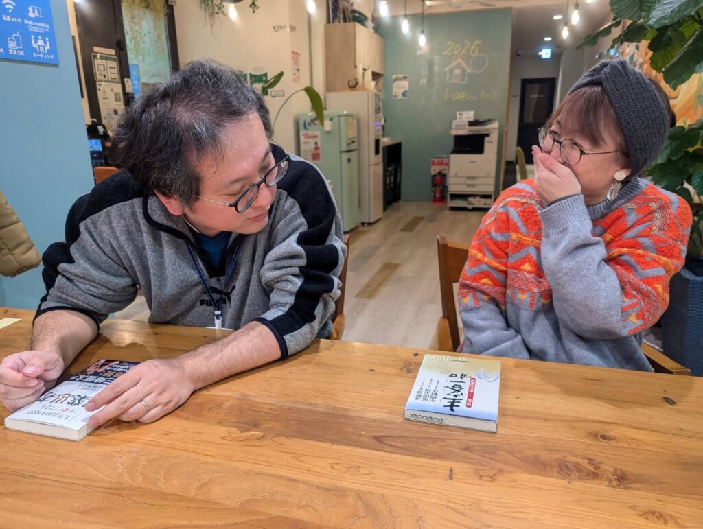 お互いの読んでいる本に興味津々のご様子👀✨私もいつも、皆さんがどんな本を持ってこられるか楽しみにしております。