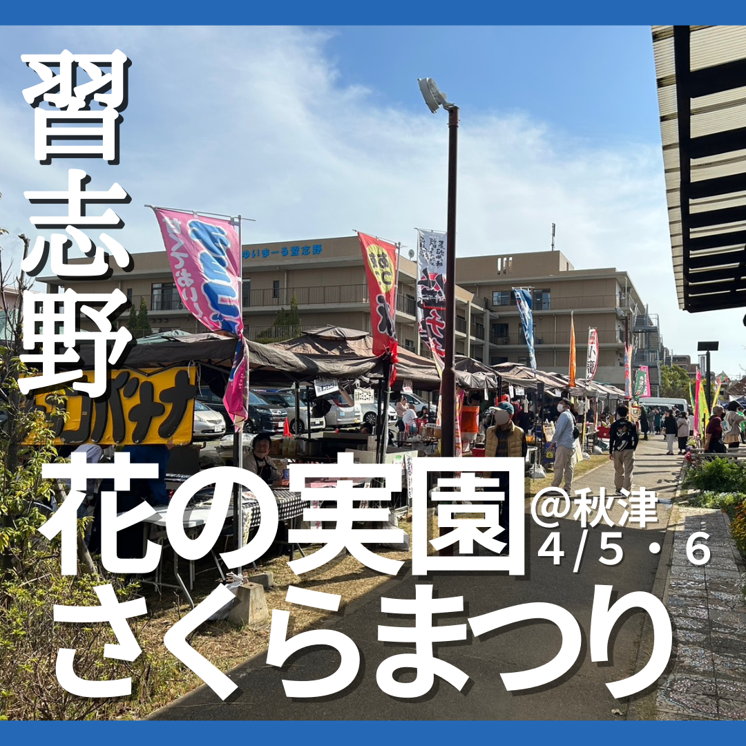 【秋津・花の実園でお祭りだ!】就労継続支援B型、生活介護の多機能型福祉施設「花の実園」で春のお祭り「さくらまつり」が開催!🌸 むぎのいえをはじめとする露店や🍺吹奏楽部、よさこいのパフォーマンスなど盛りだくさん🎷💃🎶