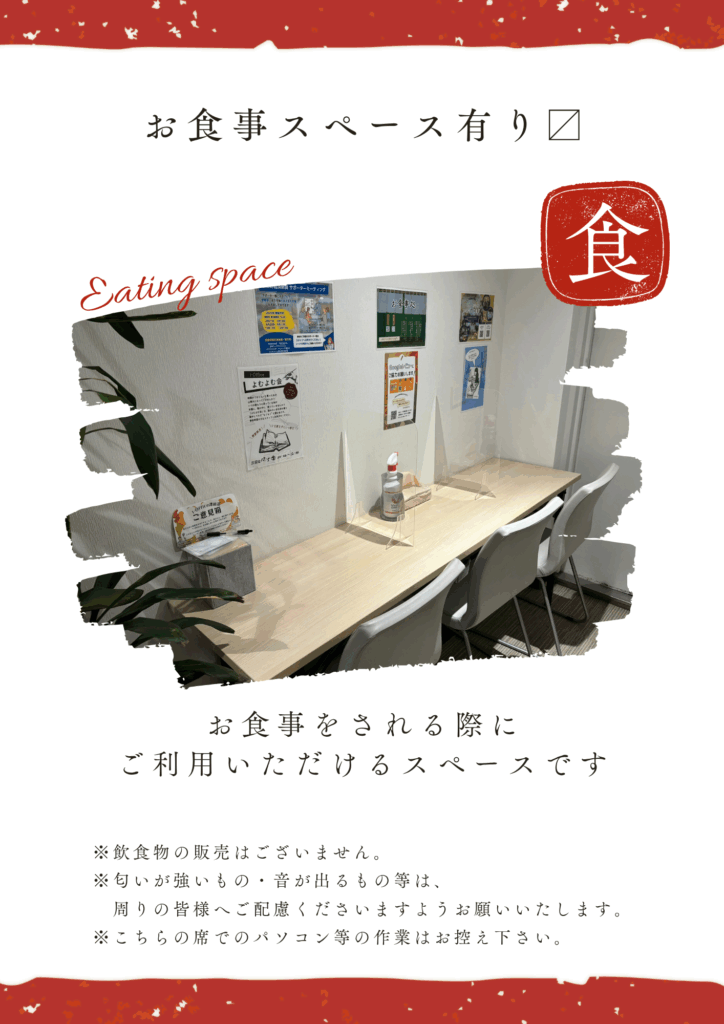 是非お食事処(ご飲食スペース)もご活用いただき、快適な時間をお過ごしくださいませ😌🍴