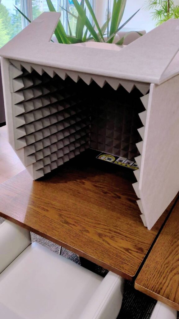 こちらの防音ボックスは周囲の音を遮断し、自分の声も外に漏れにくい設計となっており