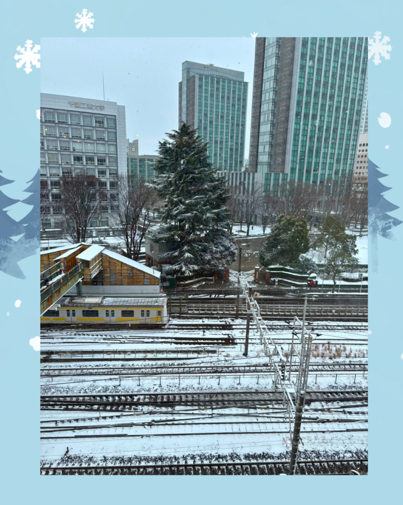 (写真だと見えにくいですが、しっかり降っております❄️)