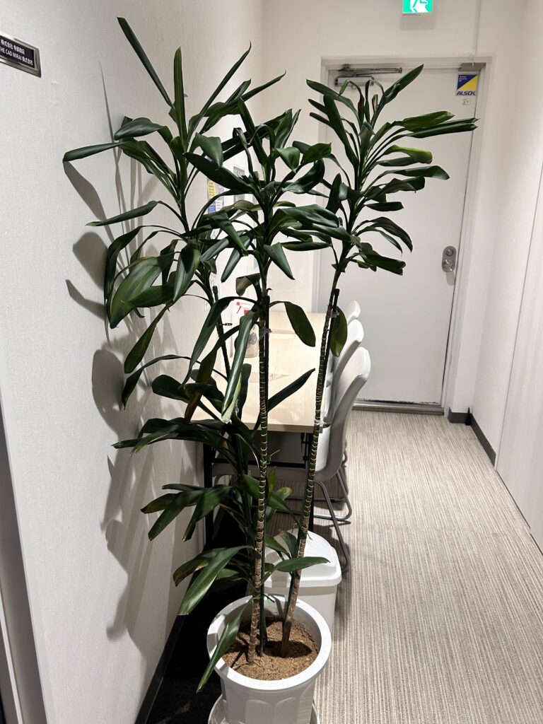 実はこのドラセナ、「幸福の木」とも呼ばれる木なんです!隣でご飯を食べたら、そのあとの作業がちょっと捗っちゃうかも…?